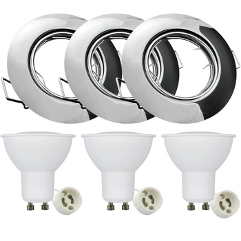 3x GOLDLUX (Polux) pohyblivá halogenová žárovka. kulatá. chrom + GU10 3.5W LED žárovka