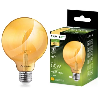 Žárovka Dekorativní Kulka LED E27, G95 6W = 50W 660lm 2000K Teplá bílá 360° Filament Globe Amber LUMILED