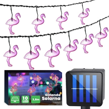 DEKORATIVNÍ zahradní SOLÁRNÍ VĚNA 10 růžových plameňáků 6500K GOLDLUX (Polux)