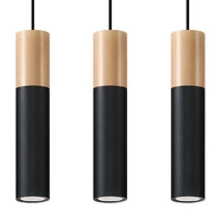 Dočasně nedostupnéPABLO 3L 3xGU10 Skandinávské černé a dřevěné závěsné stropní svítidlo SOLLUX