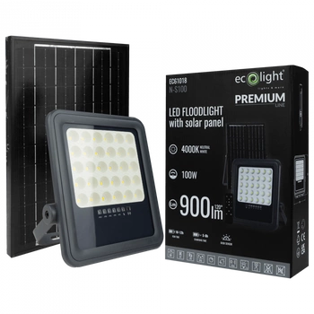LED reflektor Solar 100W 900lm 4000lm Neutral IP65 se soumrakovým senzorem + dálkové ovládání Ecolight