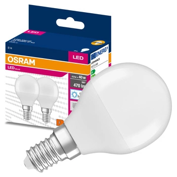 Dočasně nedostupné2x LED žárovka E14 P45 4.9W = 40W 470lm 6500K Studená bílá 200° OSRAM HODNOTA