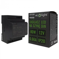 Napájecí zdroj na lištu DIN pro LED pásky 80W 12V 6,66A IP20 PREMIUM Ecolight