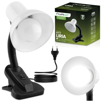 Stolní lampa Školní Noční E27, Nastavitelná s klipem Bílá LIBRA LUMILED