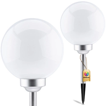 Dočasně nedostupnéLED solární zahradní lampa WHITE BALL 20cm s pohonem 3500K Teplá bílá + RGB GOLDLUX (Polux)