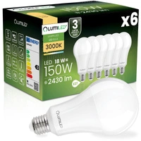 6x LED žárovka E27 A70 18W = 150W 2430lm 3000K teplá bílá 260° LUMILED