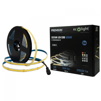 LED pásek COB 7W/m 630lm/m 320LED/m 24V 6000K studená bílá IP20 Roll 5m + napájecí zdroj + dálkové ovládání Ecolight
