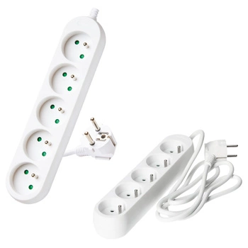 Prodlužovací kabel Zástrčka 5 x uzemněná zásuvka Napájecí pásek 1,5 m bílý Linea Kobi