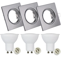 3x GOLDLUX (Polux) čtvercová černá pohyblivá halogenová žárovka + GU10 3.5W LED žárovka