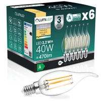 6x LED žárovka E14 svíčka BA35 2,2W 470lm = 40W 2700K teplá bílá 360° Filament energetická třída A LUMILED