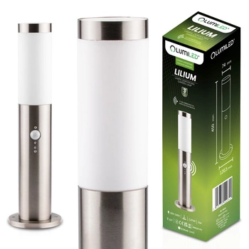Dočasně nedostupnéVenkovní zahradní lampa E27, LED snímač pohybu sloupek 45cm inox LILIUM LUMILED