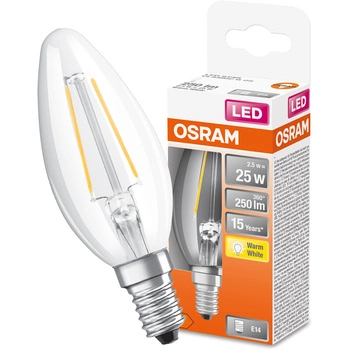 Dočasně nedostupnéLED žárovka E14 B35 CL 2.5W = 25W 250lm 2700K Teplá bílá 300° vlákno OSRAM STAR