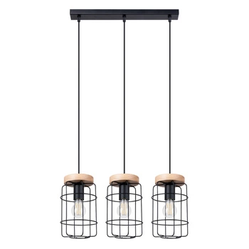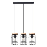 GOTTO 3L závěsné stropní svítidlo 3xE27 černé dřevěné průmyslové SOLLUX