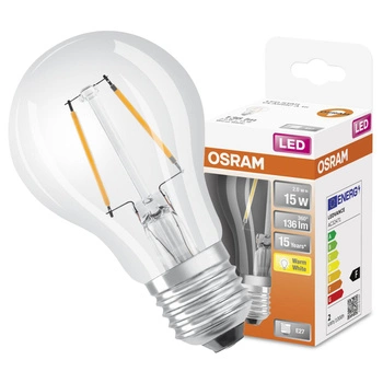 Dočasně nedostupnéLED žárovka E27 A60 CL 2W = 15W 136lm 2700K Teplá bílá 300° vlákno OSRAM STAR