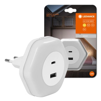 Dočasně nedostupnéNoční světlo LED s konektorem USB-A USB-C do zásuvky 15W 4lm 3000K teplé se soumrakovým senzorem bílé Lunetta Ledvance