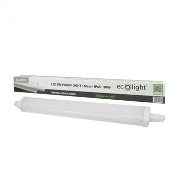 LED hermetické svítidlo 60cm lineární průchozí lampa 30W 3300lm 4000K neutrální bílá IP65 Ecolight