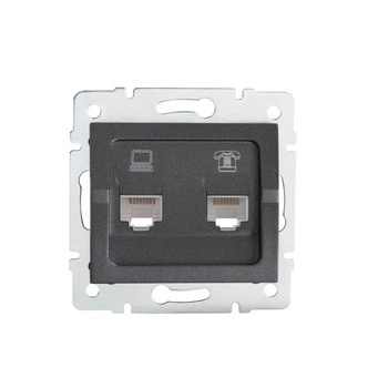 Počítačová a telefonní zásuvka RJ45 RJ11 Square Graphite LOGI Kanlux