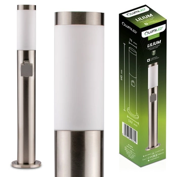 Venkovní zahradní lampa E27, LED se zásuvkou sloupek 230V 65cm inox LILIUM LUMILED