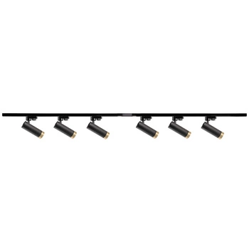 Sada přípojnic 1-fázová lišta + 6x reflektor GU10 černý FADO Sanico Goldlux