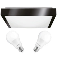 Plafond LED stropní svítidlo 41cm 2x E27 černý čtverec + 2x LED žárovka 10W 4000K Lumiled