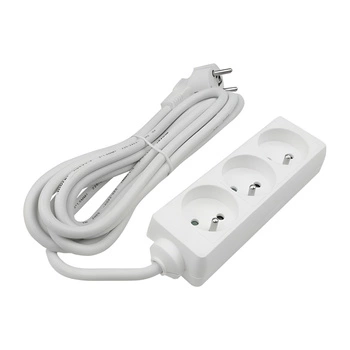 Síťová prodlužovací šňůra Zástrčka - 3x uzemněná zásuvka Napájecí pásek 3m 3x1,5mm 16A Bílá