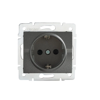 Napájecí zásuvka jednoduchá 16A s ochranou kontaktů čtvercová grafitová LOGI Kanlux