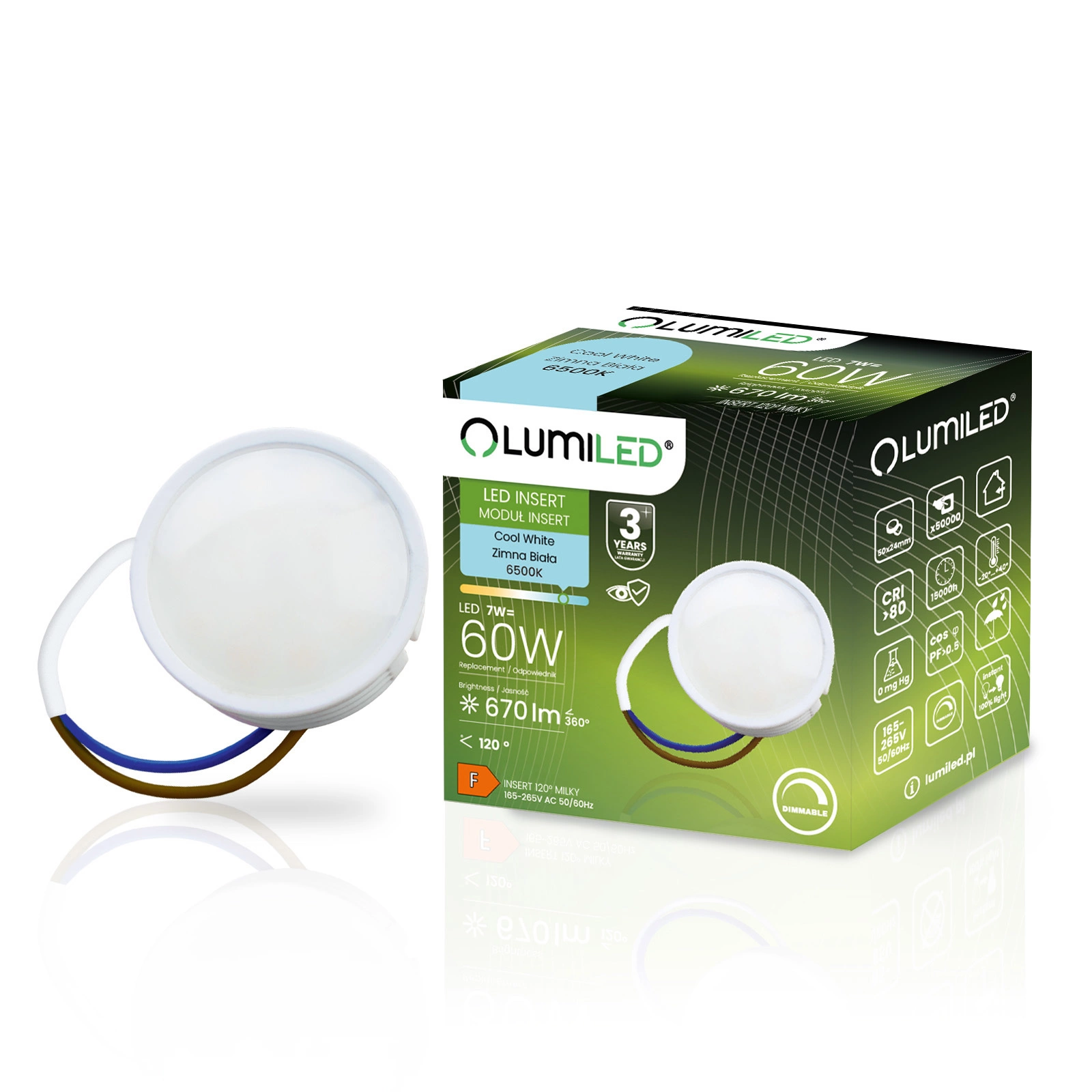 10x LED Vložka do Svítidel Modul INSERT Mléčný 7W = 60W 120° 670lm 6500K Studený Stmívatelný LUMILED