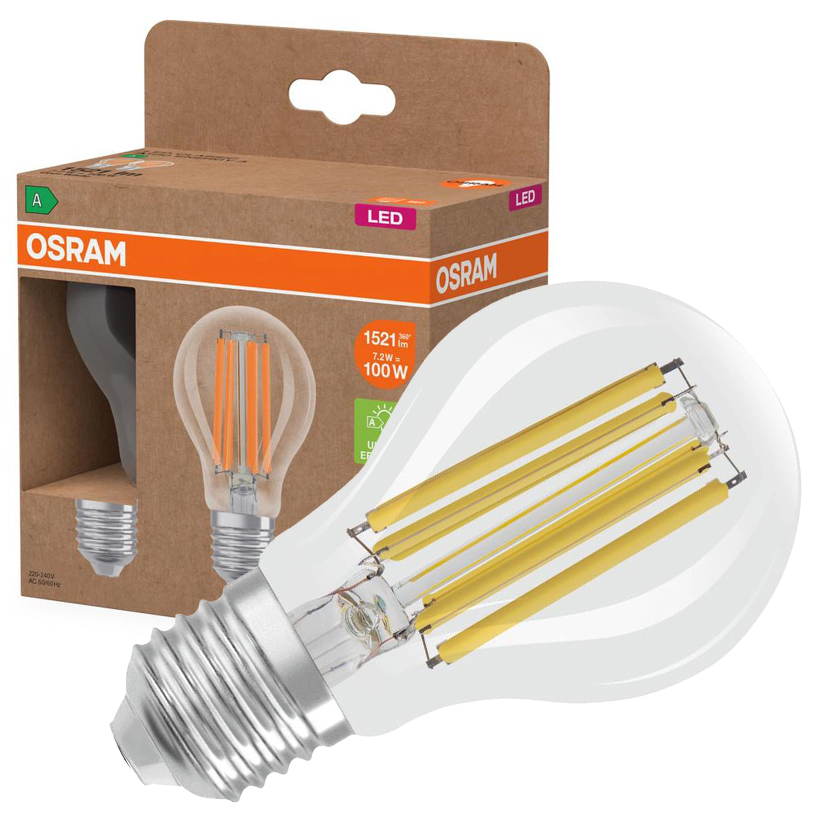 2x LED žárovka A60 E27 7,2W = 100W 1521lm 4000K Neutrální 320° vlákno CLASSIC ENERGETICKÁ ÚSPORNOST Osram