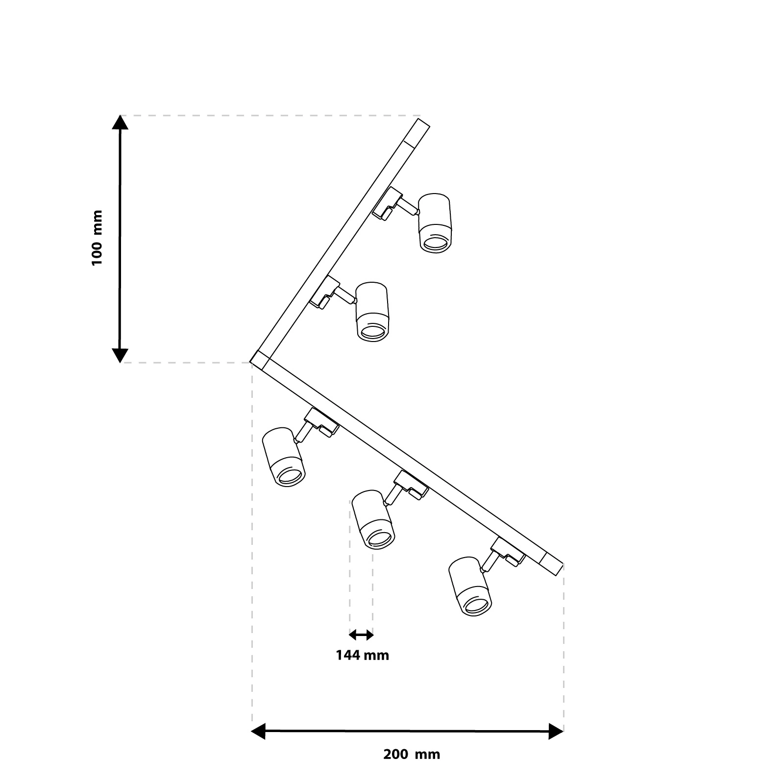 Sada obsahuje 2m a 1m světelnou lištu + úhlový spínač typu L a 5 kolejnicových reflektorů v bílé barvě, vyrobeno z vysoce kvalitní hliníkové slitiny. Sada navržena pro povrchovou montáž. Výhodou přiložených reflektorů je možnost montáže libovolné žárovky se závitem GU10 s maximálním výkonem nepřesahujícím 30 W. Díky kolejnicím můžeme ovládat osvětlení v místnosti podle svých aktuálních dispozic. S touto sadou můžeme pomocí konektoru typu L vytvořit zajímavé uspořádání osvětlení, když přípojnice namontujeme pod úhlem. Lištu lze také libovolně zkrátit a odrazky lze připevnit na libovolné místo na liště.