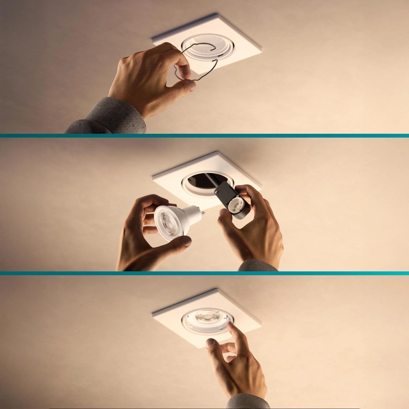 Výměna žárovky nebyla nikdy tak snadná. Díky důmyslné konstrukci svítidla to zvládnete sami bez demontáže a bez rizika poškození stropu. Jednoduše odstraňte montážní sponu, vyjměte použitou žárovku a vložte novou, poté sponu opět připevněte. Celý proces trvá jen chvíli a nevyžaduje žádné nářadí, což zaručuje každodenní pohodlí a komfort.
