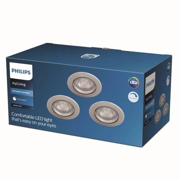 3x LED SPARKLE 5W 2700K Stmívatelné kulaté saténové svítidlo pro zápustnou montáž PHILIPS