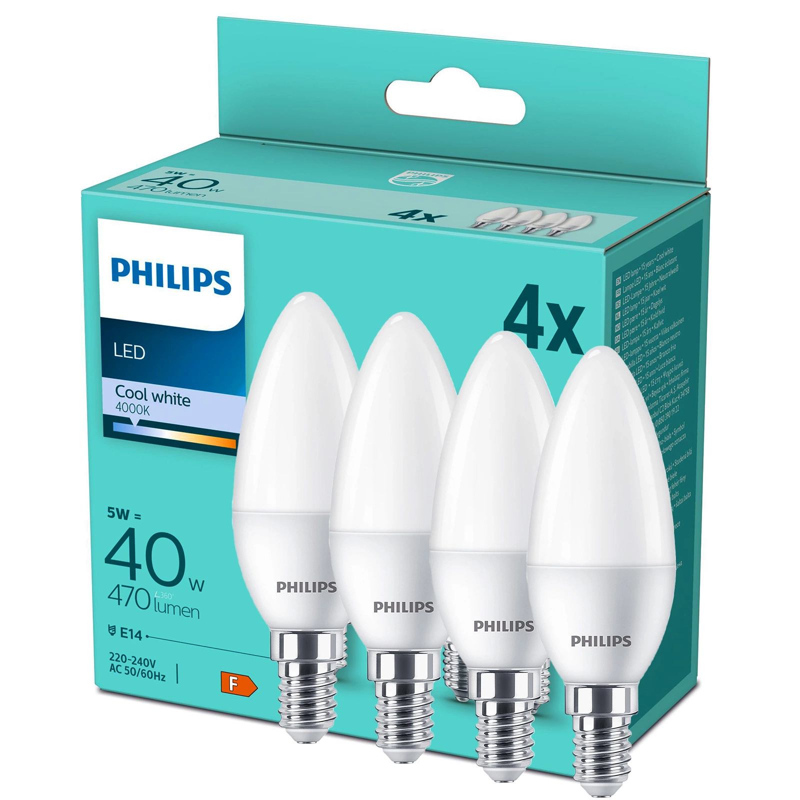 4x LED žárovka E14 B35 4,9W = 40W 470lm 4000K neutrální bílá Milk PHILIPS
