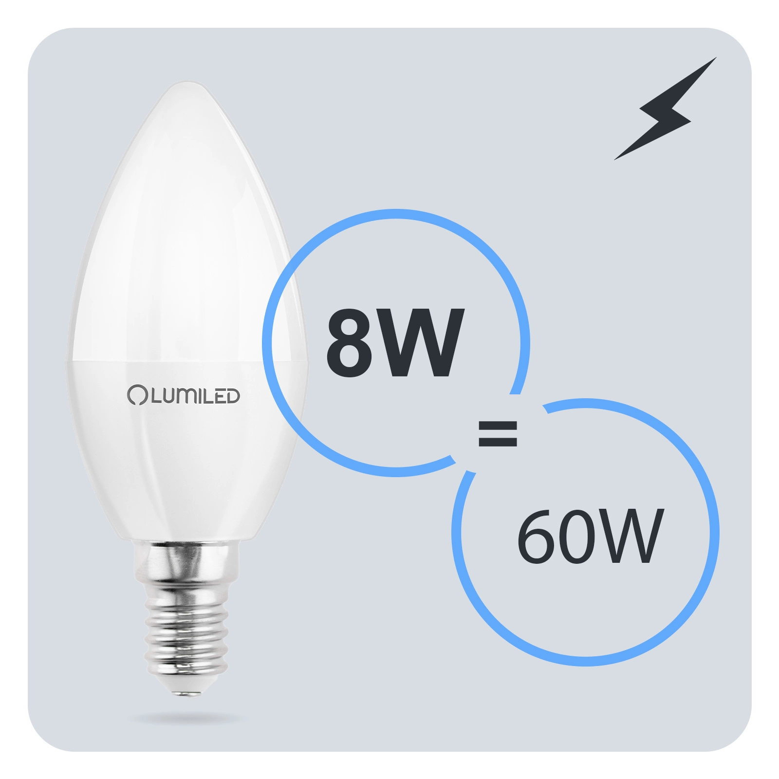 Sada žárovek LED Lumiled 6x 8 W je ideální volbou pro ty, kteří potřebují výkonnější, ale energeticky úsporné osvětlení. Vyzařuje teplou barvu 3000 K, která vytváří útulnou, relaxační atmosféru ideální pro obývací pokoj, ložnici nebo jídelnu. Patice ve tvaru svíčky E14 B35 se hodí do nástěnných svícnů, lustrů a dekorativních lamp. Světelný tok 880 lm poskytuje intenzivní a příjemné světlo srovnatelné s tradiční 60W žárovkou a úhel vyzařování 180° rovnoměrně osvětluje prostor bez oslnění.