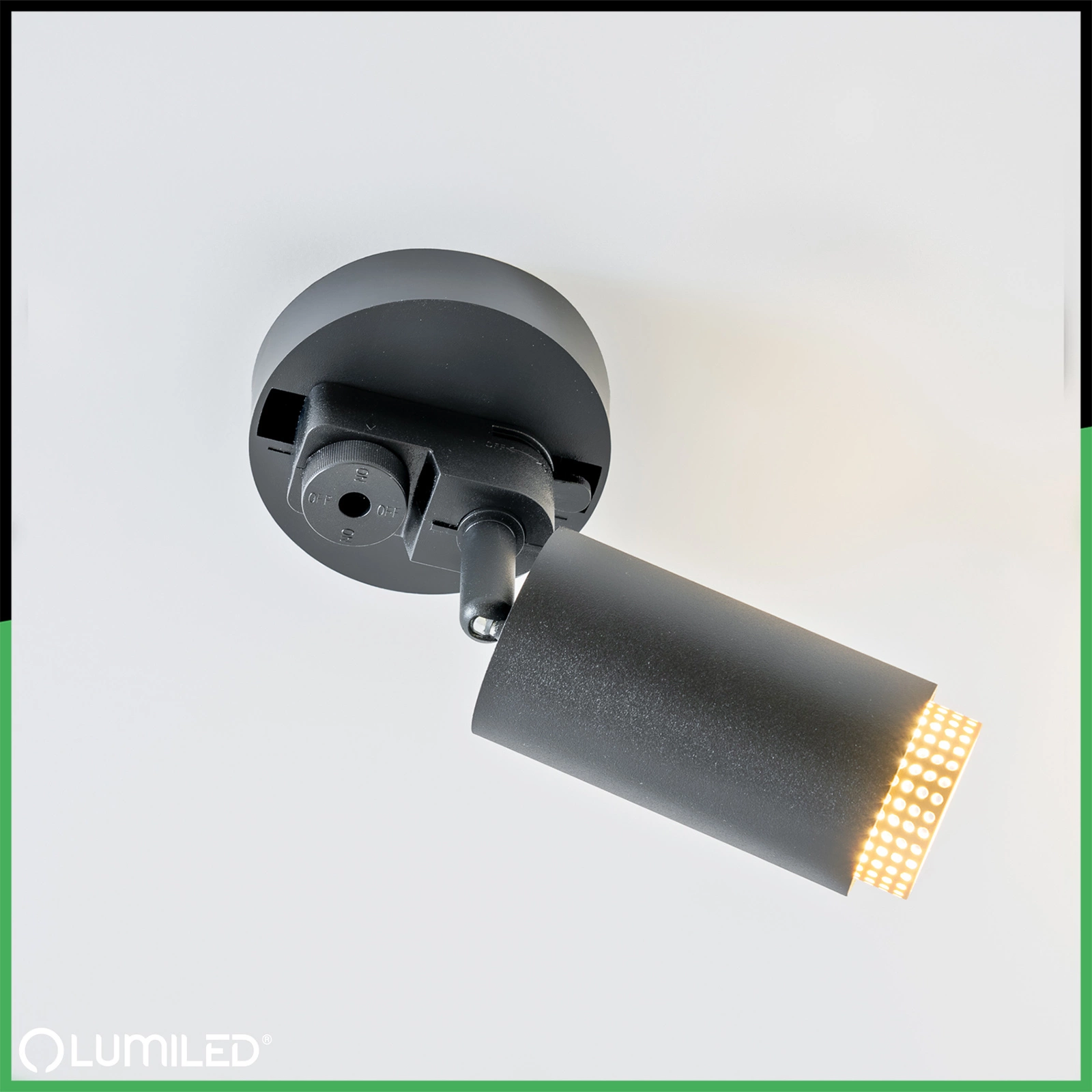 Přípojnicový adaptér Lumiled Huma je funkční a estetická součást osvětlovacího systému, která umožňuje snadnou montáž reflektorů na jednofázové přípojnice. Její klasická černá barva dokonale ladí s moderním designem interiéru a dodává jí elegantní a profesionální vzhled.