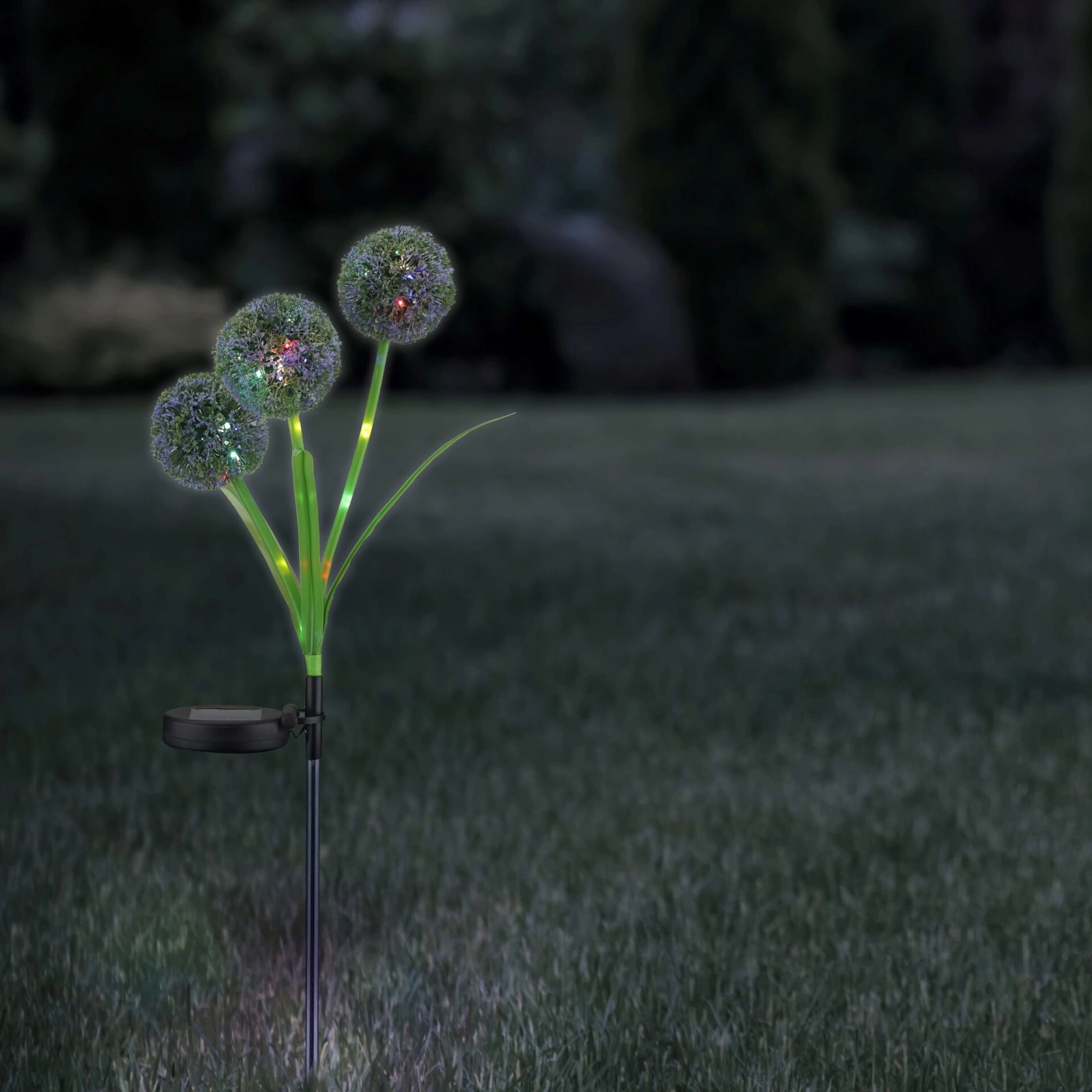 Lampa Allium je nejen atraktivním doplňkem, ale také mimořádně praktickým řešením. Díky soumrakovému senzoru se automaticky rozsvítí, když se setmí, a vnese do interiéru barevnou nádheru v odstínech modré a zelené. Její bezdrátová instalace umožňuje snadné umístění kdekoli na zahradě nebo terase, což vám dává volnost při uspořádání prostoru. Kombinace moderního designu a praktičnosti činí z této solární lampy ideální volbu pro každou příležitost. Dopřejte si na své zahradě dávku romantiky a funkční elegance výběrem spolehlivé lampy Allium.