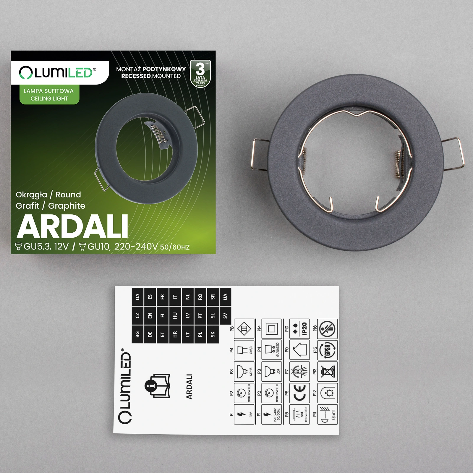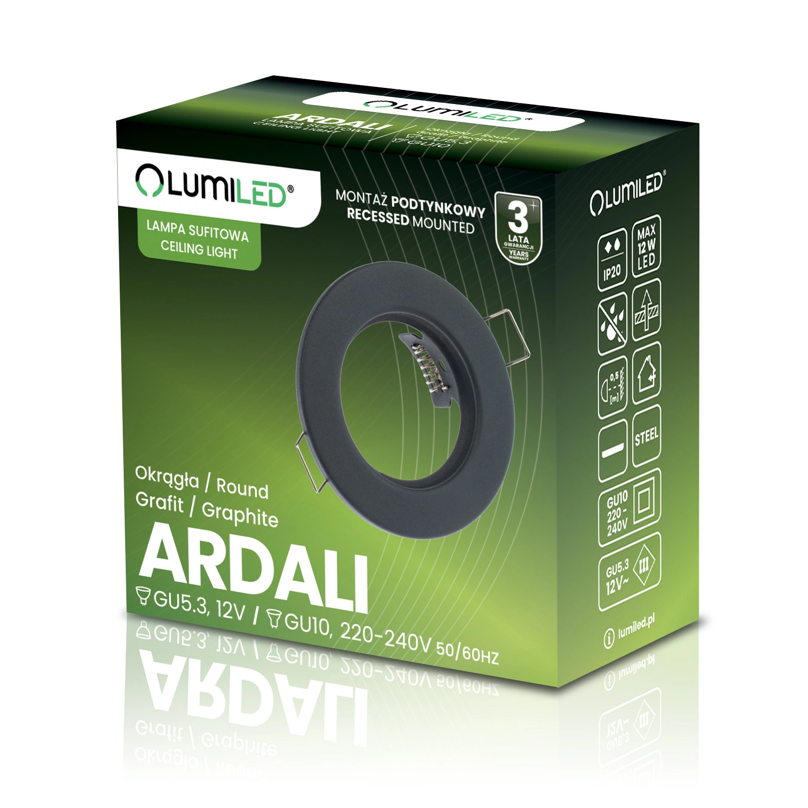 Kulaté pevné halogenové svítidlo v elegantní grafitové barvě od renomované značky Lumiled je kombinací stylu a funkčnosti. Vyrobeno z vysoce kvalitní oceli, zajišťuje trvanlivost a estetický vzhled. Je uzpůsoben pro zapuštěnou montáž a je ideální jako decentní dekorativní osvětlení i jako celkový osvětlovací prvek v prostorných interiérech, kde nemusí stačit jediný světelný zdroj. Jeho moderní design se harmonicky začleňuje do stylových bytů, domů a elegantních kanceláří a podtrhuje charakter moderního uspořádání. V kombinaci s vhodnou LED žárovkou je ideálním řešením pro náročné prostory.