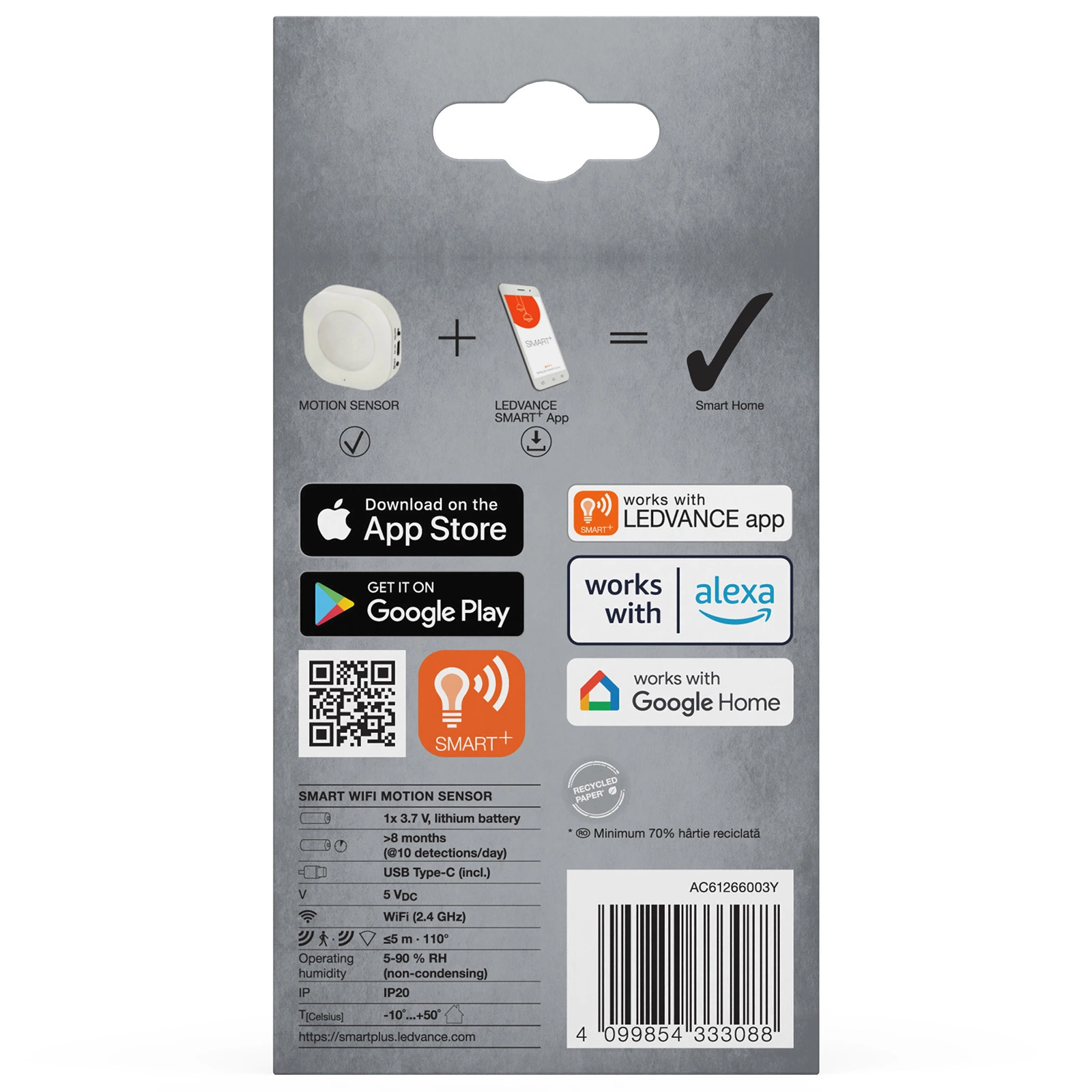 Senzor je kompatibilní s oblíbenými hlasovými asistenty, jako jsou např Amazon Alexa a Google Assistant , která umožňuje ovládání hlasovými příkazy. Se snímačem pohybu SMART+ WiFi můžete zvýšit pohodlí a bezpečnost svého domova , automatizace osvětlení a dalších spotřebičů v závislosti na přítomnosti osob v místnostech.
