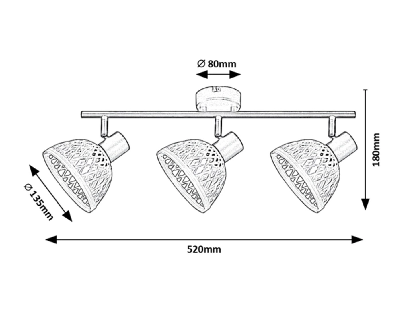 Lampa podporuje vyměnitelné světelné zdroje E14 s maximálním výkonem 15 W a pracuje při jmenovitém napětí 230 V. Má stupeň krytí IP20 a třídu ochrany I, což zaručuje dlouhé a bezpečné používání. S průměrem 13,5 cm a montážní šířkou 80 mm je ideální do různých prostor. Výrobek je certifikován CE a je na něj poskytována dvouletá záruka.