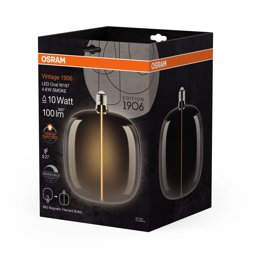Dekorativní LED žárovka E27 4,8W = 10W 100lm 1800K teplá bílá 320° kouřové vlákno stmívatelná Vintage 1906 Osram
