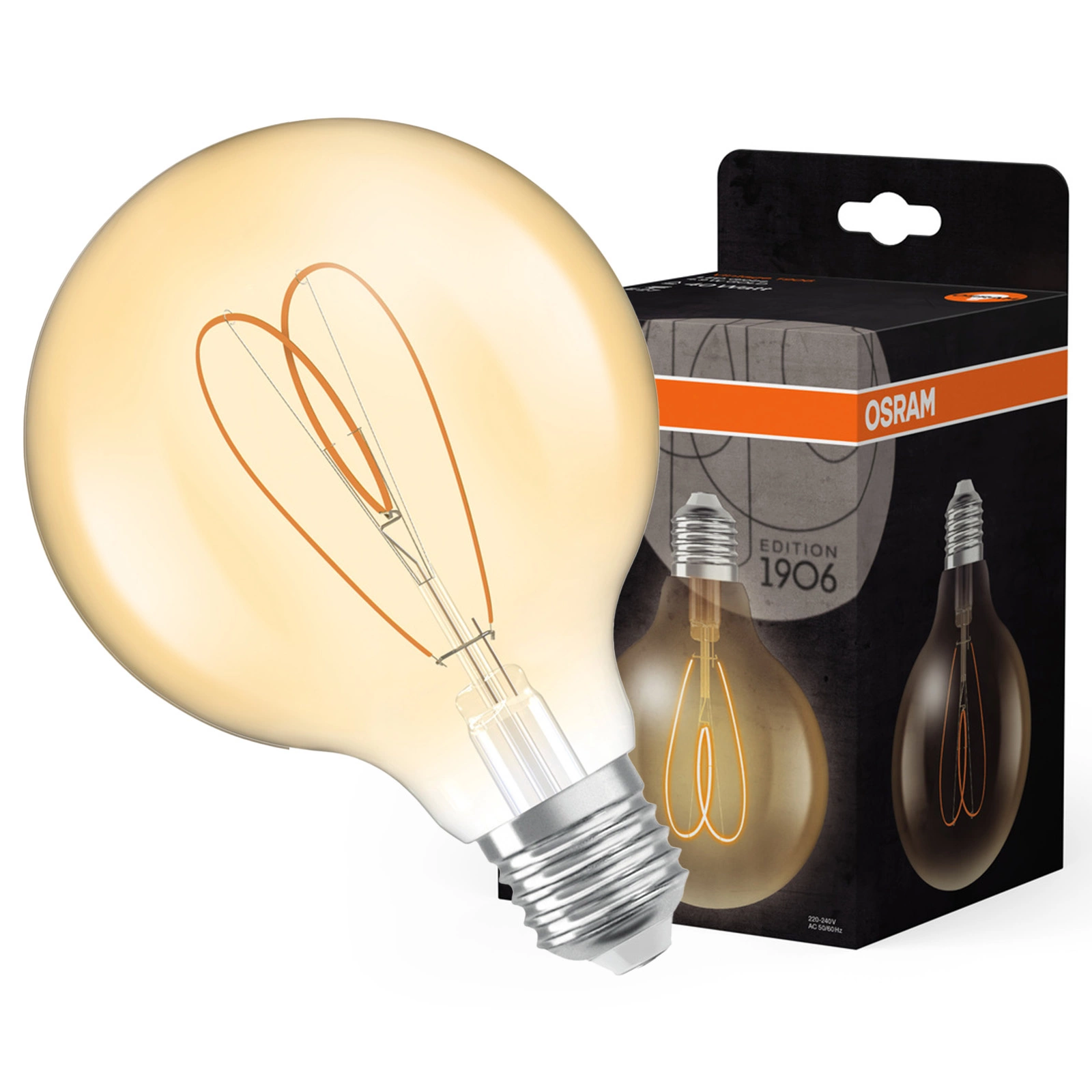 Dekorativní LED žárovka G95 Sphere E27 4,9W = 40W 470lm 2200K teplá bílá CRI90 300° Amber Dimmable Vintage 1906 Osram