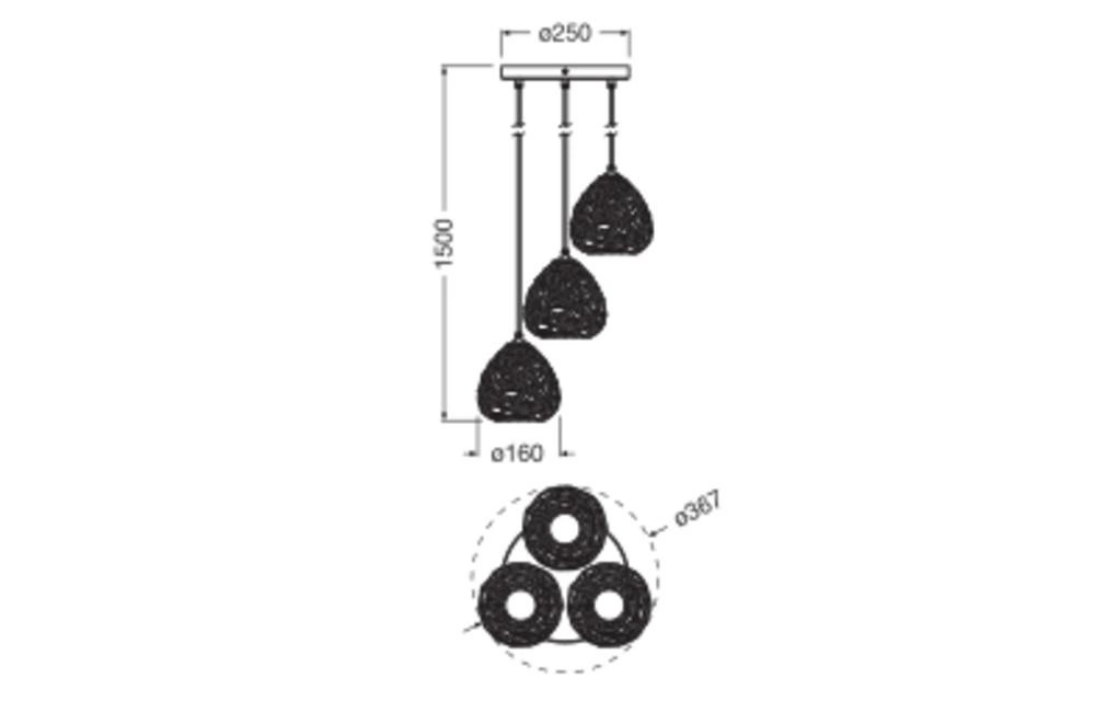 Výrobek je vybaven paticí E27 s možností výměny světelného zdroje, což poskytuje flexibilitu při výběru žárovky. Třída ochrany I a stupeň krytí IP20 zajišťují bezpečné používání, přičemž žárovka není stmívatelná. Montáž pomocí závěsných a třípólových svorek usnadňuje instalaci. Kód harmonizované ochranné známky je 94051990 a původ výrobku je Čína.