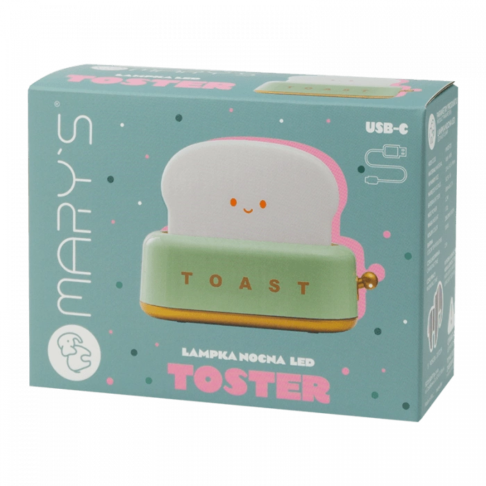 Objevte kouzlo a funkčnost nočního světla LED na topinkovač od Mary's! Tato jedinečná lampička ve tvaru toustovače je dokonalým doplňkem každého dětského pokoje a její teplé a příjemné světlo s teplotou barvy 3000 K dodá interiéru pocit útulnosti a klidu. S příkonem 1,2 W a kapacitou baterie 800 mAh nabízí lampička až 6 hodin provozu při vysokém jasu a působivých 120 hodin při nižším jasu, což zajišťuje dlouhotrvající osvětlení na mnoho nocí.
