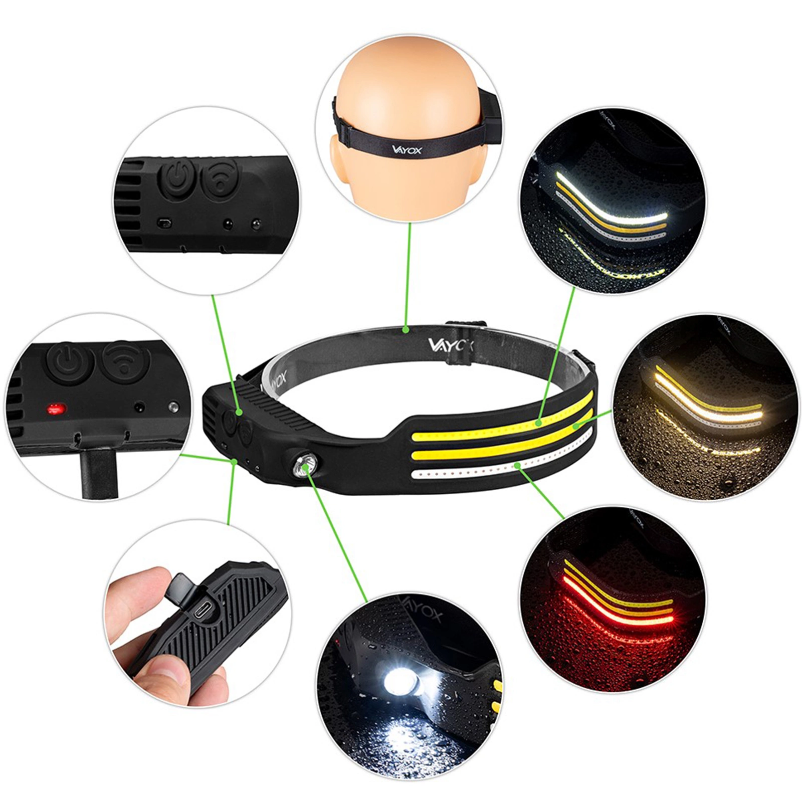 Dobíjecí čelovka 3x COB + XPE Pro Series VA0130 VAYOX