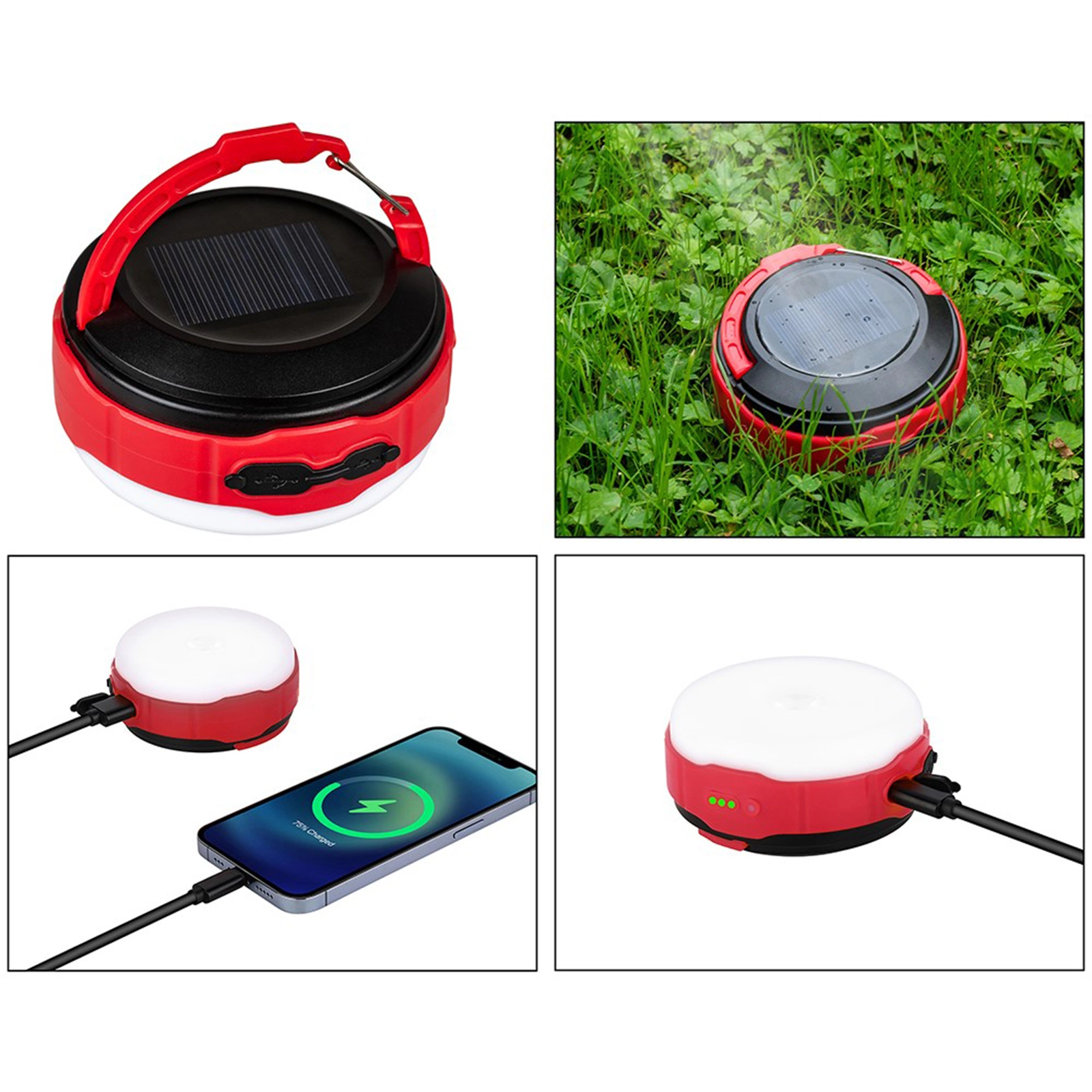 Solární kempingová lampa je všestranné zařízení, které plní mnoho funkcí a je ideální pro použití při kempování a dalších outdoorových aktivitách. Lampa je vybavena výkonným světlem LED s barevnou teplotou 3000K-6500K), které poskytuje jasné, studené, teplé, neutrální bílé světlo, červené světlo a světlo s vysokou barevnou teplotou.