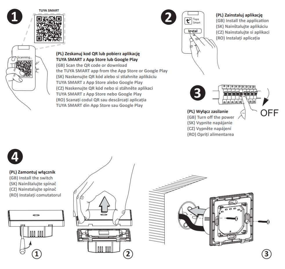 - Je kompatibilní se širokou škálou zařízení Tuya Smart, což umožňuje integrovat spínač s dalšími chytrými řešeními jako součást jednotného ekosystému chytré domácnosti.