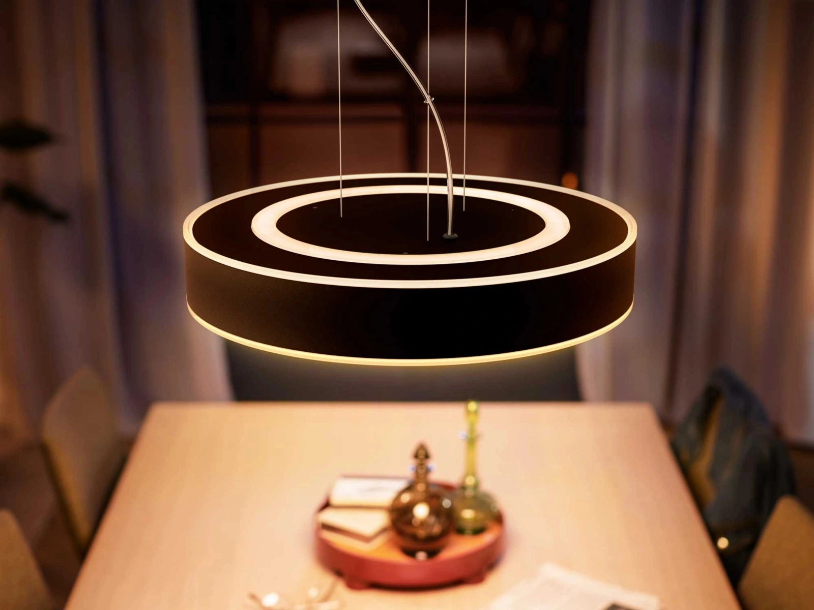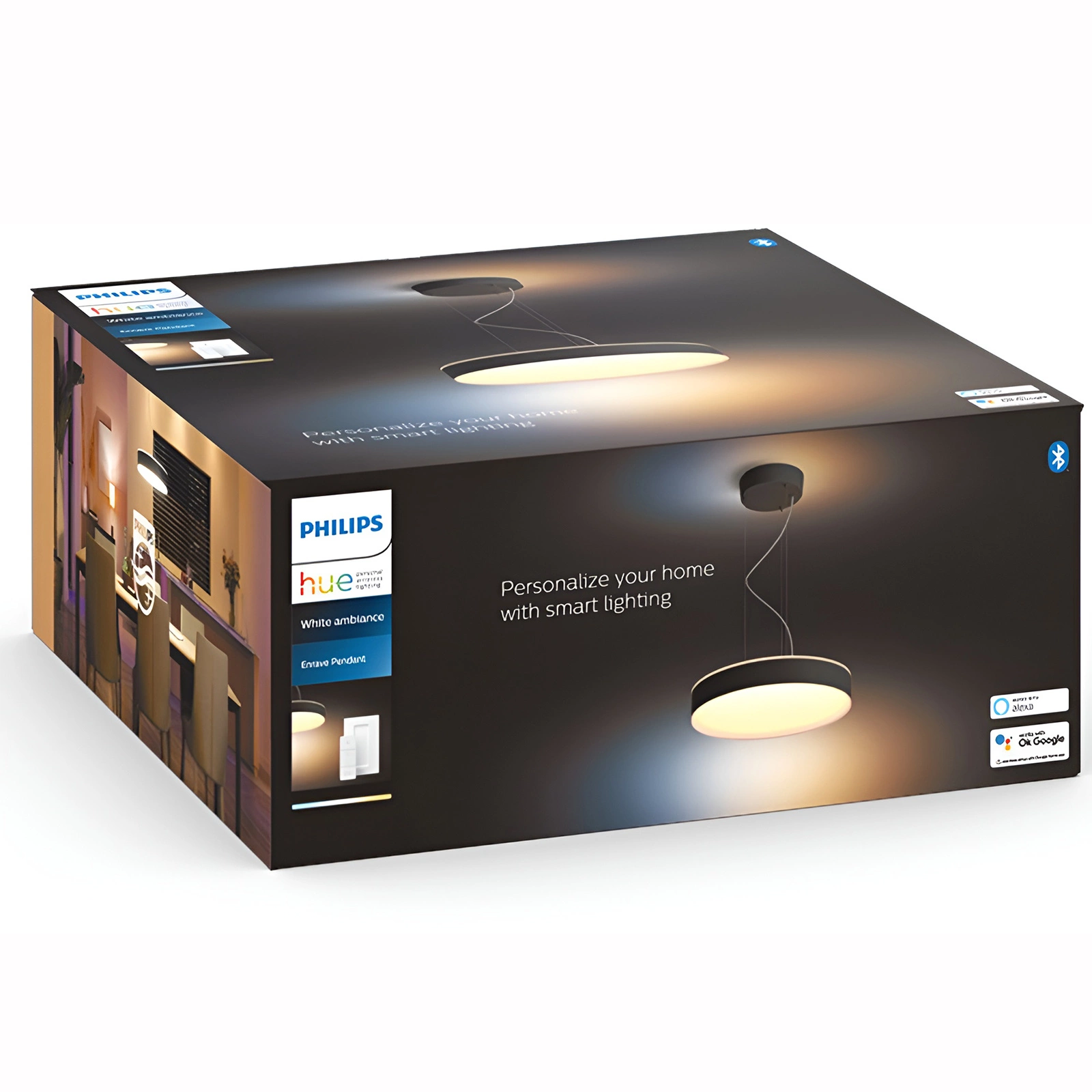 Závěsné stropní svítidlo HUE ENRAVE LED uznávaný a respektovaný v oboru osvětlení Philips. Svítidlo vybavené integrovaným světelným zdrojem LED 33,5W a velmi účinný světelný výkon - 4300 lm, vyzařuje příjemné a relaxační světlo z nastavitelná teplota barev od příjemně teplé přes neutrální až po studenou, s nimiž můžeme vytvořit náladu vhodnou pro každou příležitost. Stropní svítidlo ENRAVE nejenže díky svému stylovému krytu dokonale ladí s interiérem domácnosti, ale také nabízí možnost vyzařování světla směrem dolů i nahoru, což zaručuje funkční osvětlení. Tato lampa může fungovat samostatně nebo jako součást systému chytrého osvětlení po připojení k můstku Hue. Snadné zapínání a vypínání světel, stmívání, rozjasňování a výběr z různých světelných scén.