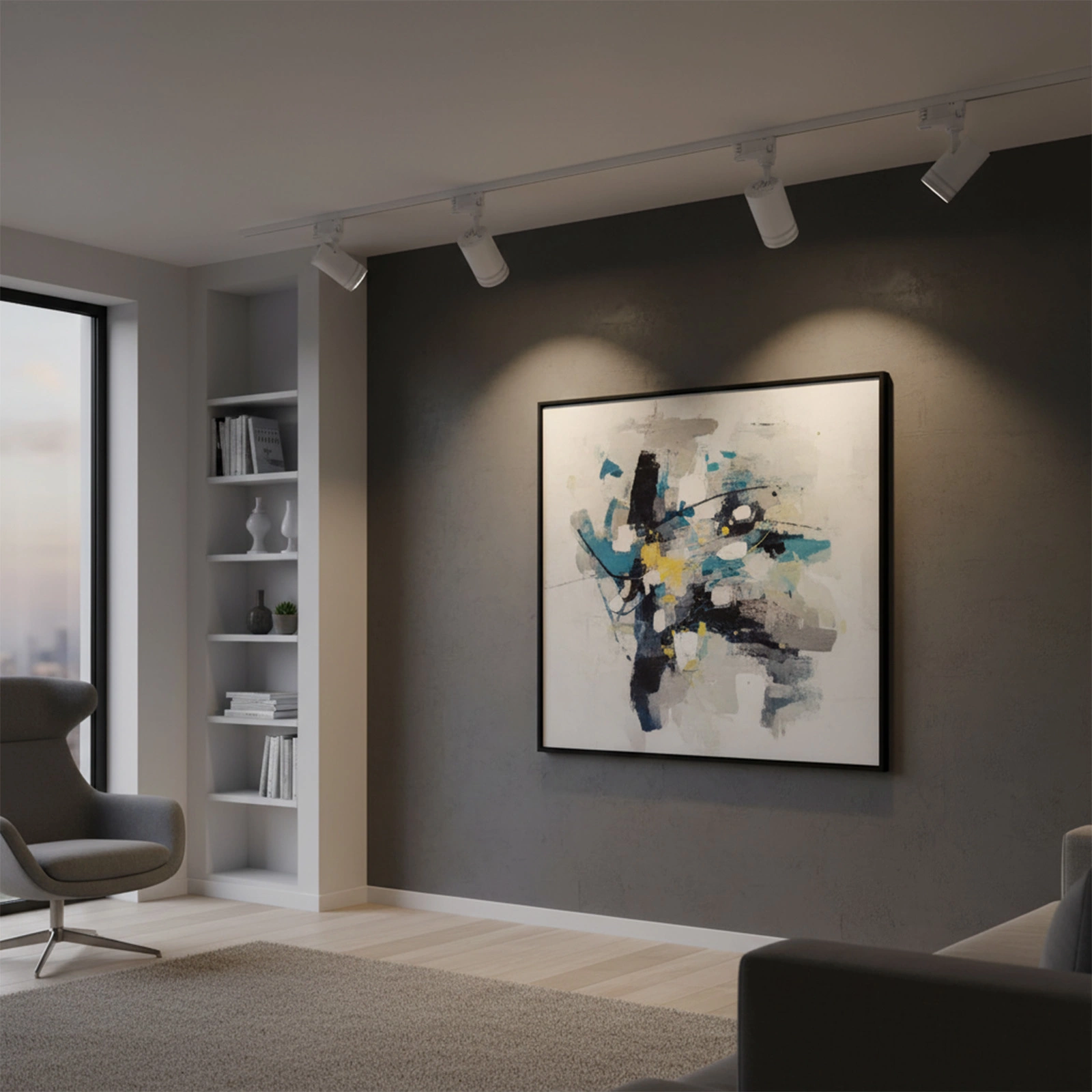 - Moderní design: Kolejnicové bodové svítidlo MILANO, vyrobené z bílého hliníku s akrylovými kroužky, se hodí do každého moderního interiéru.
