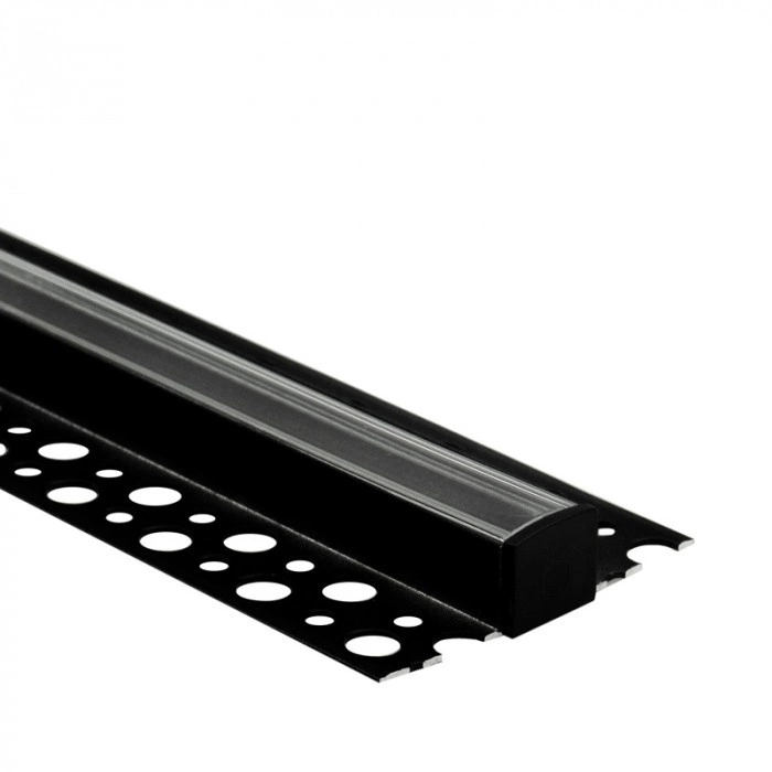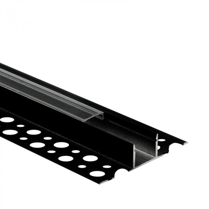 Hliníkový LED profil pro sádrokarton REGIPS Podprofil pro dlaždice černý 1m s průhledným difuzorem pro LED pásky + koncovky GN Ecolight series