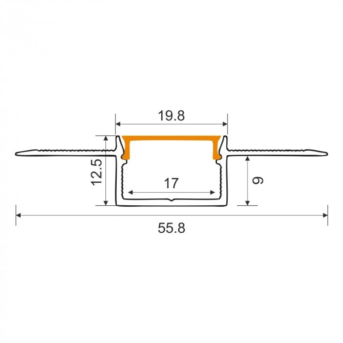 Hliníkový LED profil pro sádrokarton REGIPS široký pod omítku bílý 2m s průhledným difuzorem pro LED pásky + krytky Ecolight řady GPS