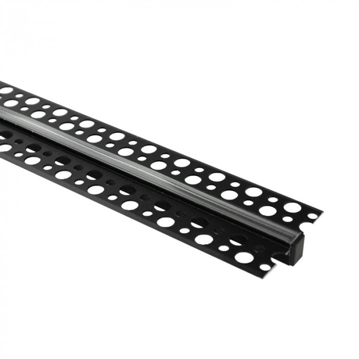 Hliníkový LED profil pro sádrokarton REGIPS Zapuštěný pod omítku černý 1m s průhledným difuzorem pro LED pásky + krytky Ecolight řady GPW